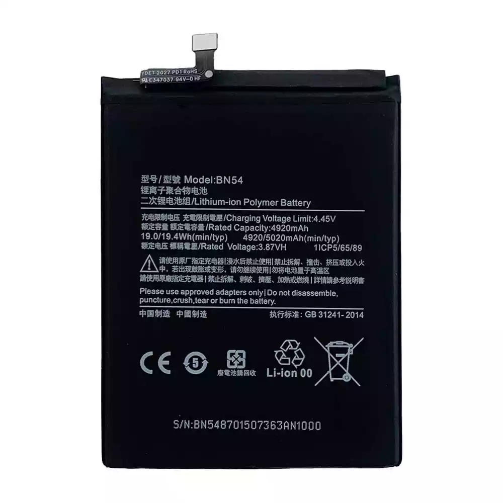 Batterie BN54 pour Xiaomi Redmi Note 9 / M2003J15SC / M2003J15SG / M2003J15SS /M2004J19C / Redmi 10X 4G / Redmi 9 Global / M2004J19G / M2003J15SC / Redmi 9 Prime / M2004J19PI / Poco M2 / MZB9919IN / M2004J19PI