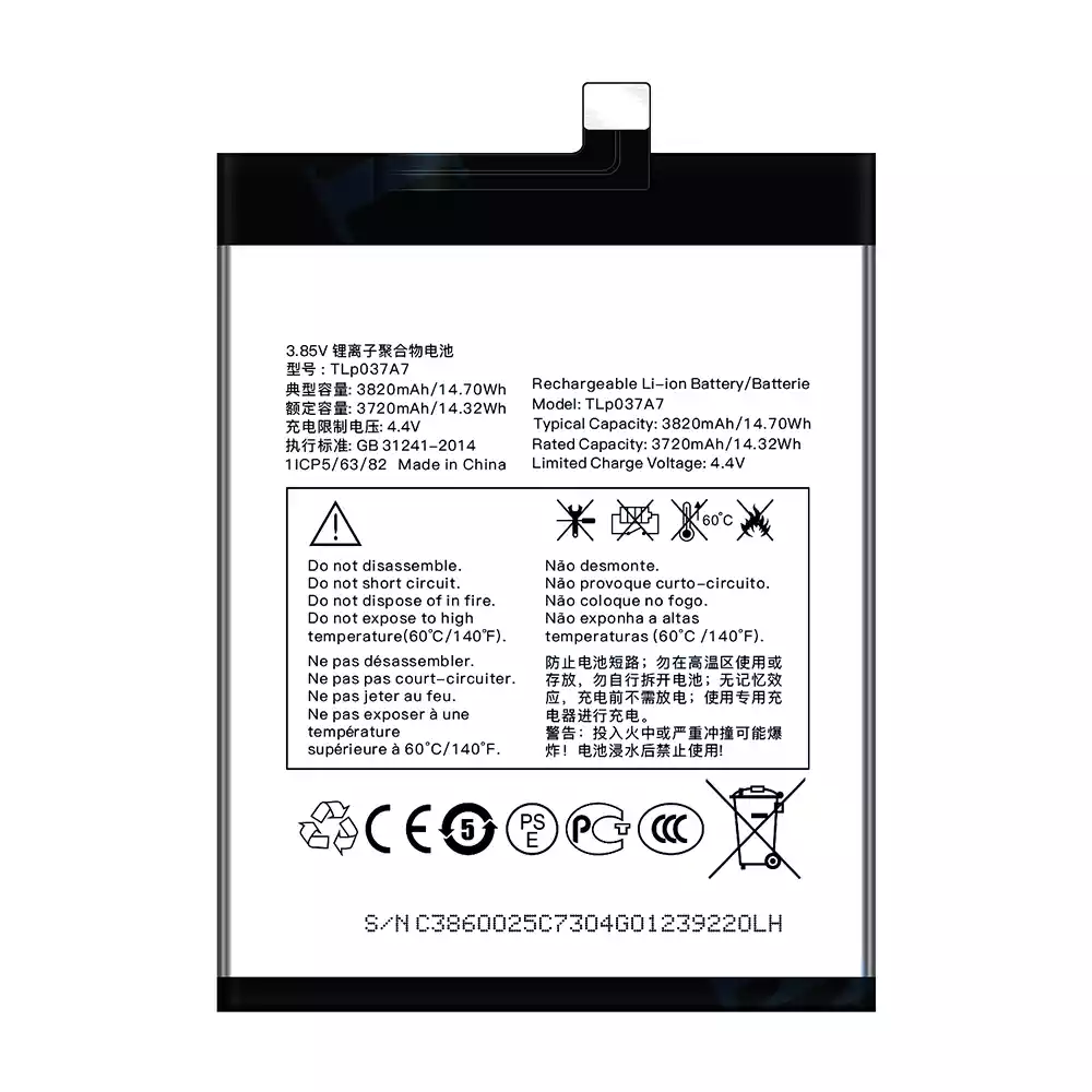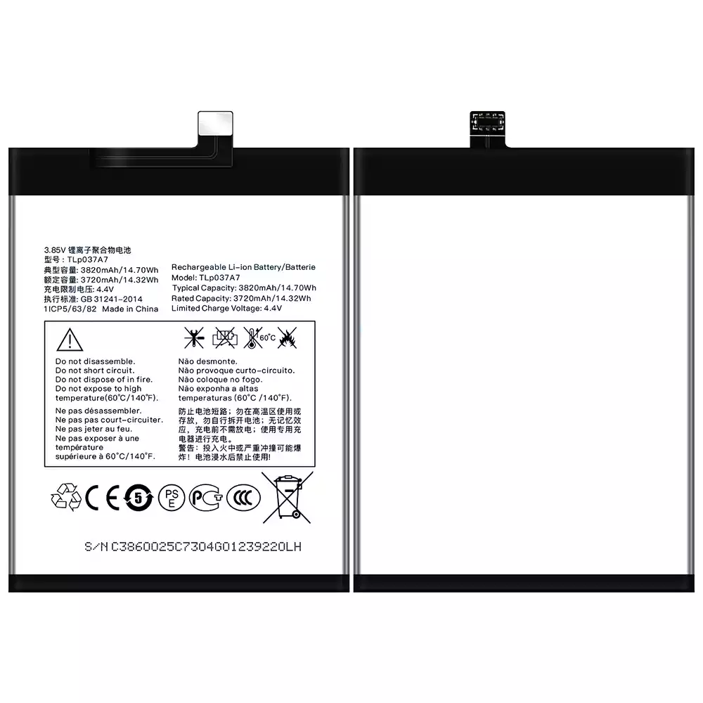 Batterie TLP037A7 pour Alcatel TCL Plex/T780H
